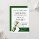 Vergnügen Hochzeitseinladung in einem lässigen Thema, mit einer Cartoon Flasche Champagner und dunkelgrüne Akzente auf einem weißen Hintergrund. Personalisieren Sie den Text auf Ihre Hochzeitsbedürfnisse Anzug.