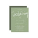 Eine Hochzeitseinladung mit einem lässigen, aber modernen Typografie-Design. Diese schlaue und dunkelgrüne, solide Farbeinladung betont das große Ereignis mit dem Wort Hochzeit in einem großen, handgeschriebenen Schriftart. Die Erholung der Einladung liegt in einer sauberen, offenen Typografie, die dem Design eine solide Struktur verleiht. Diese Einladung spiegelt die entspannte, aber gut organisierte Natur Ihrer Hochzeit wider. Bereit für Karo Einladungen aus Ihrer Liste? Fügen Sie einfach Ihre Informationen hinzu, fügen Sie diese laden Sie in Ihren Warenkorb, und haben eine tolle Hochzeit. Lässige zeitgenössische Sage Typografie Hochzeitsempfehlung | ©Melissa Patton - Designer