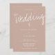 Eine Hochzeitseinladung mit einem lässigen, aber modernen Typografie-Design. Diese beige hellbraune, solide Farbeinladung betont das große Ereignis mit dem Wort Hochzeit in einem großen, handgeschriebenen Stil, Schriftart. Die Erholung der Einladung liegt in einer sauberen, offenen Typografie, die dem Design eine solide Struktur verleiht. Diese Einladung spiegelt die entspannte, aber gut organisierte Natur Ihrer Hochzeit wider. Bereit für Karo Einladungen aus Ihrer Liste? Fügen Sie einfach Ihre Informationen hinzu, fügen Sie diese laden Sie in Ihren Warenkorb, und haben eine tolle Hochzeit. Lässige, moderne beige-braune Typografie Hochzeitsszenario | ©Melissa Patton - Designer
