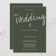Eine Hochzeitseinladung mit einem lässigen, aber modernen Typografie-Design. Diese dunkelgrüne, solide Farbeinladung betont das große Ereignis mit dem Wort Hochzeit in einem großen, handgeschriebenen Schriftart. Die Erholung der Einladung liegt in einer sauberen, offenen Typografie, die dem Design eine solide Struktur verleiht. Diese Einladung spiegelt die entspannte, aber gut organisierte Natur Ihrer Hochzeit wider. Bereit für Karo Einladungen aus Ihrer Liste? Fügen Sie einfach Ihre Informationen hinzu, fügen Sie diese laden Sie in Ihren Warenkorb, und haben eine tolle Hochzeit. Lässige, moderne dunkle Sage Typografie Hochzeitsszenario | ©Melissa Patton - Designer