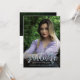 Opal iridescent Print Image Script. Einladungs-Ankündigung für den Abschluss, perfekt für den Highschool- oder Uni-Abschluss. Moderne minimalistische Typografie, lässige elegante Schrift "Graduate" Schrift. Erleben Sie diese besonderen Momente des Wachstums und lächeln Sie Freude und Jugend für immer. Laden Sie ein volles Portrait-Mode-Cover-Foto des Absolventen auf der Vorderseite, ein Landschaftsorientierungsfenster-Foto sowie relevante Details der Abschlussfeier auf der Rückseite hoch. Schattet automatisch die perfekten Bereiche des Bildes.