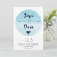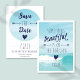 "Etwas Schönes ist am Horizont" Zitat auf der Rückseite der Einladung ist eine schöne Touch, um Ihren Gästen Ihre Save the Date vorzustellen. Ein blauer Ozean, Sommerthema für eine Hochzeit am Strand. Folgen Sie der formalen Einladung im gleichen Stil. Nachricht für alle anderen Elemente, die Sie in diesem Design-Thema zusammenfassen möchten.
