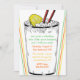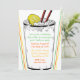 Farbenfrohe Einladung gemacht mit der Grafik eines Glases mit Eis, Zitrone und roten Strohhalmen als Textbereich. Farbenfrohe grüne, orangefarbene und goldgelbe Textur ist bereit, für Ihr Summer Party zu personalisieren. Ideal für Picknicks, Grillabende, Party am Pool und vieles mehr.