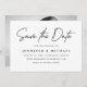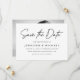 Einfache Save the Date Karte mit "Save the Date" in einem schwarzen handgeschriebenen Skript mit weißem Hintergrund. Personalisieren Sie die moderne Save the Date-Karte, indem Sie Ihre Namen, das Hochzeitsdatum, den Hochzeitsort, die Hochzeitswebsite, etc. hinzufügen. Die minimalistische Save the Date Karte kehrt um, um Ihr Lieblings-Foto der horizontalen Verlobung anzuzeigen.