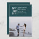 Fett und lässige weiße Typografie und Rahmen, Single Foto Save the Date Karte mit dunklen aquamarinen Hintergründen.
