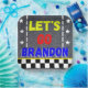 Dieses Design hat eine helle Schrift für das Let's go Brandon Gesang auf Gehsteig mit karierten weißen und schwarzen Quadraten, um eine Nascar Ziellinie.
