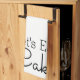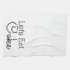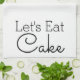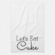 Modernes, weißes Küchentuch mit dem Wort "essen wir Kuchen" in schwarzer Schrift.