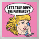 Lasst uns das Patriarchiegeschenk abnehmen. Niedliche Retro-Pop-Kunst Feminismus Plakat in coolem Rosa für eine starke Pro-Wahl Frauen wählen für die weibliche Führung in unserem Land. Setzen Sie sich mit diesem phantastischen politischen Humor-Cartoon für Frauenrechte und Frauenförderung ein, der von einer hübschen blonden Führungspersönlichkeit begleitet wird, die einen FrauenMärz auf einem Vintagen Telefon plant, das in einer Talk-Blase ein lustiges Zitat enthält.