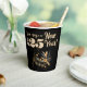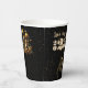 Glamour Party Papier Tassen zum Feiern von Ende und Anfang des Jahres, auf einem schwarzen Hintergrund, mit Gold und schwarzen Details, leicht anpassbar