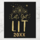 Lasst uns Silber Typografie Silvester Party Design - mit Feuerwerken, Sternen und Imitaten Gold Glitzer Textur. Shiny zum Silvesterfest. Say Happy New Year mit Freunden und Stil. Funny Zitat Weinetiketten