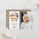 Halloween-Geburtstag "Let's Get Spooky" mit fliegenden Fledermäusen, lächelnden Kürbissen, Spinnen, Spinnweben und Halloween-Gespenst in Orange und Braun. Ideal für ein niedliches Halloween Kindergeburtstag Party.