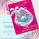 Dieser digitale Papierausschnitt verleiht der Illusion eines 3D-Drucks, aber das ist es nicht. Das Design umfasst eine tropische Szene in Rosa, Weiß und Türkis mit einem Flamingo in der Mitte, gerahmt von tropischem Blattwerk und Hibiskus Blume. Feiern Sie Ihren Geburtstag stilvoll und schicken Sie diese schicke und frische Party Einladung-Postkarte an Ihre Freunde und Familie. Fügen Sie einfach Ihre persönlichen Party-Daten hinzu und Sie sind gut zu gehen.