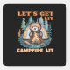 Lasst uns hingehen. Campfire Lit. Zelt Camping Cla Quadratischer Aufkleber