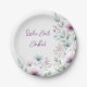 Schöne personalisierte Hochzeit "Let's Eat Cake" Papier-Teller. Eine elegante Aquarellblüte mit violetten Blumen mit schlängelgrünem und staubblauem Blattwerk und Blumendesign. Diese sind für ein Hochzeitsessen oder für ein Brautparty oder einen Junggeselinnen-Abschied sehr schön.