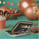 Glamouröse Party Papier-Teller zum Feiern von Ende und Anfang des Jahres, auf einem schwarzen Hintergrund, mit Gold-und schwarzen Details, leicht anpassbar