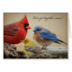 Eine Ansammlung Vögel, ein Kardinal, ein Bluebird und ein Laubhund sind eine lustige, abenteuerliche Art, Freunde zu einem Besuch einzuladen.