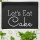 Modernes, schwarzes Küchentuch mit den Worten "Lasst uns Kuchen essen" in weißer Schrift.