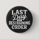 This distressed typographic design features the quote, “Last Day of Restraining Order,” in white print. Have you ever looked forward to something that seemed to take forever? Finally, no more stressing out about restrictions. Fly free!