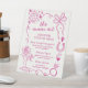 Add a touch of vintage western glamour to your bachelorette party with this chic and playful "The Main Act" Signature Cocktail Menu sign. Perfectly styled for a Retro Disco Cowgirl or Mid-Century Last Rodeo bachelorette weekend, this custom tabletop sign features charming illustrations of a classic cowgirl in a martini glass, a festive disco ball, music notes, horseshoe, cacti, and a sparkling diamond ring. The sign has space to displays three delicious, on-theme signature cocktail recipes to impress your guests which you can easily edit using the Zazzle design tool. This custom cocktail menu is designed to sit center stage at your bar or beverage station. All text is fully customizable, making it easy to create a unique and personalized detail for the bride-to-be’s unforgettable bachelorette celebration. Whether you’re having a "Last Rodeo" or a "Nashville Bach," this editable template is the ultimate way to set the vibe for a neon-lit weekend! Matching items can be found in the collection.