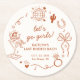 Let's go girls! Celebrate the bride-to-be with these trendy "Last Rodeo" Disco Cowgirl Bachelorette party paper coasters. Featuring an earthy terracotta (desert rose) color palette, playful hand-drawn western illustration doodles (like horseshoes, cowboy boots, and cacti), and a shimmering disco ball, these coasters are perfect for adding a touch of retro glam to your party. Whether you’re calling it a "Last Rodeo" or a "Nashville Bach," this editable template is the ultimate way to set the vibe for a neon-lit weekend! Matching items can be found in the collection.