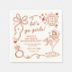 Let's go girls! Celebrate the bride-to-be with these trendy "Last Rodeo" Disco Cowgirl Bachelorette party paper napkins. Featuring an earthy terracotta (desert rose) color palette, playful hand-drawn western illustration doodles (like horseshoes, cowboy boots, and cacti), and a shimmering disco ball, these napkins are perfect for adding a touch of retro glam to your party. Whether you’re calling it a "Last Rodeo" or a "Nashville Bach," this editable template is the ultimate way to set the vibe for a neon-lit weekend! Matching items can be found in the collection.