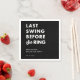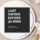 Set the tone with this bold “Last Swing Before the Ring” sign, featuring clean modern typography on a sleek black background. Perfect for welcome tables, bar areas, or party décor, it adds a sharp and cohesive look to your golf-themed bachelor celebration. Personalize with the groom’s name and event date for a standout display.