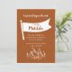 Camping Bachelorette Party Invitation for Bride's Last Trail Before The Veil. Featuring forest rustic orange and a camp flag, this invitation sets the tone for a weekend of adventure and fun. The itinerary is included, so your guests will know exactly what to expect on this last trail before the veil - think hiking in the mountains, swimming in the lake, and making s'mores around the campfire. This trendy and unique invitation is perfect for any bride-to-be who loves the great outdoors.