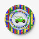 Personalisiert Blau, grün, gelb, rote Autos, Traktoren, LKWs und Verkehrsschild Junge Geburtstagsparty Papier Teller.