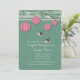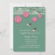 Vier hängende chinesische Papierlaternen hängen von einem Bambuszweig. Zwei Vögel überfliegen Ihre Personalisierung in dieser wunderbaren Einladung. Geeignet für fast jeden glücklichen Anlass. Woll Geld retten? Drucken Sie diese Einladung auf dem einfachen, quadratischen Eckpapier.