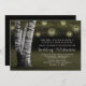 Laternen + Rustikale Birken-Baum-Hochzeits-Einladungen - Eigenschaften eine Waldung der Bäume der weißen Birke in einer rustikalen Einstellung mit einem Birkenbaum, den Sie Initialen in und glühende Laternen "schnitzen können" baumelnd vom Baum. Die Hochzeitsfeier und -Empfang zum zu folgen werden in einem extravaganten eleganten Skript gedruckt.