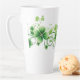 Diese große latte Tasse wird mit einem St. Patrick's Day Kleeblatt gedruckt. Passen Sie dieses Objekt an oder kaufen Sie, wie es ist. Lizenziertes Bild