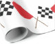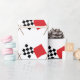 Rote und karierte laufende Flaggen.