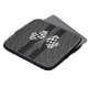 Applique gekreuzte karierte laufende Flaggen übertragen wie ein Chrom wie Applique auf einem Kohlenstofffaserart-Entwurfsdruck. Die Kohlenstofffaser und die schwarzen Streifen schauen die Anzüge, die Automobil sind, modern, und industrielle Geschmäcke und die Simulation 3D der Flaggen macht für einen dynamischen schauenden Entwurf.