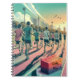 Eine Gruppe von Läufern, die sich auf dieser Laufstrecke im Pop-Art-Stil verbunden und getroffen haben. Ein ombre ziegel sagt 'musst laufen'! Behalt deine täglichen/wöchentlichen Läufe in diesem Journal. Die Wörter können auf Wunsch in etwas Anderes geändert werden.
