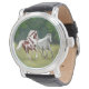 Originelles Kunstdesign der galoppierenden Appaloosa und Paint Pferde von Pferdekünstlerin Carolyn McFann von Two Purring Cats Studio gedruckt auf einer Qualitätsuhr für Western und englische Reitliebhaber.