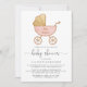Laufwerk mit Baby Girl Dusche Retro Carriage Pink Einladung