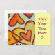 Pfirsich, Rosa und Orangenherzen kreuzen sich wie Wolken, die in einem Himmel treiben. Eine grüne Kontur verfolgt jedes Herz. Hellgelbe Farbpunkte sind wie Konfetti zwischen den Herzen. Die Aquarellmalerei hat oben eine leichte Goldschicht und rosa. Laughtherzen sind ein Detail aus dem Inspirationswort "Lagh" Malerei. Personalisieren Sie diese Postkarte mit Ihrem eigenen Text und Bildern.