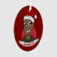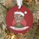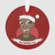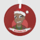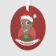 Weihnachtsschmuck mit einer Illustration eines fröhlich lächelnden afroamerikanischen Mannes mit dem Hut des Weihnachtsmanns; bearbeitbare Textvorlage; Weihnachtsfeiergestaltung mit rotem Hintergrund