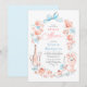Feiern Sie die zukünftige Braut mit dieser Grandmillennial-inspirierten Hochzeitsduscheinladung, die die "New Traditionalist"-Ästhetik perfekt einfängt, die moderne Romantik definiert. Dieses hochwertige Design zeigt einen zarten, handgemalten Wasserfarben-Blumenkranz in einer weichen Farbpalette aus Rosa und Hellblau. Im Zentrum des Designs steht eine signaturhafte hellblaue Coquette-Schleife, ein trendiges Motiv, das einen Hauch von vintage-inspiriertem, hyper-femininen Charme hinzufügt. Das verspielte Layout ist mit maßgeschneiderten, skizzenbuchartigen Illustrationen verziert, darunter eine gekühlte Flasche Champagner, elegante Sektgläser, eine mehrstöckige Torte und eine klassische Blumenvase im Rokoko-Stil. Diese künstlerischen Details rufen die anspruchsvolle Atmosphäre einer intimen Gartenparty oder eines stilvollen Strandmittagessens hervor. Um die Kunstfertigkeit auszubalancieren, wird eine dramatische, geschwungene Kalligrafie für die "Dusche"-Überschrift mit sauberer, moderner Typografie für die Veranstaltungsdetails kombiniert, um eine mühelose Les