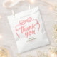 Launige rosa Schleife Danke Geschenktüten mit spielerischer handgeschriebener Schrift — perfekt für jede Party.