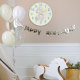 Verleihen Sie dem Zimmer Ihres Kindes mit dieser launigen Wasserfarben-Wanduhr einen Hauch von Magie. Mit einem flauschigen Lamm, Pastellballons und einer Geburtstagstorte in beruhigenden Blautönen ist sie perfekt für Kinderzimmer und Räume voller Freude und Fantasie.