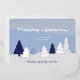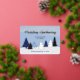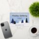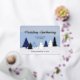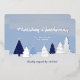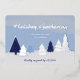 Eine Karte mit blauen Winterhimmeln und einem Wald aus stilisierten Bäumen. Dieses niedliche Design zeigt verschiedene Blautöne auf der Leinwand sowie Bäume. Die Folie fügt der Winterlandschaft den letzten Schliff an Glanz hinzu (Silber passt gut!). Suchen Sie nach dem passenden Umschlag, um Ihre Weihnachtspost zu vervollständigen!