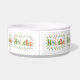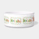 Lustige, launische Feiertagsschüssel für Hunde. Hübsches Geschenk für pelzige Freunde in dieser Saison. Farbdesign mit Stechpalme, Schneemann, Zuckerstange, Kerze, Pinienzapfen, Kardinal und Fellzweig umgeben von Weihnachtslichtern. Einfach den Namen des Hundes hinzufügen.