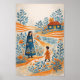 Diese charmante Illustration im Volkskunststil fängt einen friedlichen Moment zwischen einer Mutter und ihrem Kind ein, die auf einem gewundenen Pfad durch eine blühende ländliche Landschaft spazieren. Umgeben von zarten Blumen, sanften Hügeln und einem gemütlichen Cottage, das in der Ferne leuchtet, weckt das Kunstwerk Wärme, Liebe und die stille Schönheit einfacher Familienaugenblicke.