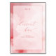 Dieses Hochzeitstisch-Schild verfügt über einen sanften, pastellrosa Hintergrund mit einem traumhaften Wasserfarb-Washeffekt, der eine luftige und verspielte Atmosphäre schafft. Das Design umfasst elegante kursiv geschriebene Typografie für "Dessertbar" und eine freundliche serifenlose Schrift für den Satz "bitte bedienen Sie sich selbst", was sowohl Raffinesse als auch Klarheit bietet. Anpassbare Initialen oben fügen eine persönliche Note hinzu und machen es perfekt, um die Dessert-Station auf Ihrer Feier zu verschönern. Das ausgewogene Layout und die warme Farbpalette rufen eine spielerische, aber dennoch raffinierte Stimmung hervor, ideal für jeden festlichen Anlass.