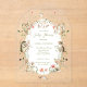 Feiern Sie die bevorstehende Ankunft Ihres kleinen Schatzes mit dieser zauberhaften Waldtier-Baby-Shower-Einladung. Mit einem zarten Wasserfarben-Kranz aus Wildblumen und Grün zeigt dieses Design eine transparente Acryl-Einladung mit einer süßen Schar von Waldtieren, darunter ein Gössel, eine Maus, ein Häschen, ein Igel und ein Eichhörnchen.