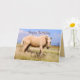 Ein schönes Palominopferd steht in einer windgepeitschten Weide. Eine andere Ansicht des Pferdes ist auf der Rückseite der Karte. Sie können diese Karte personalisieren, indem Sie den Namen ändern.