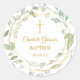 Mit einem dekorativen Lorbeergarten, goldenen Ringen und goldenem Kreuz. Auf diesem eleganten, geschlechtsneutral gestalteten Aufkleber können Sie sich mit Ihrer Taufe oder Taufdetails ganz persönlich verwöhnen. Entwickelt von Thisisnotme©