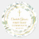 Mit einem dekorativen Lorbeergarten, goldenen Ringen und goldenem Kreuz. Auf diesem eleganten Aufkleber personalisieren Sie mit Ihren besonderen ersten heiligen Kommuniondetails. Entwickelt von Thisisnotme©