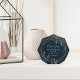 Erschaffen Sie mit diesem eleganten, individuellen Acrylblock in einer einzigartigen geometrischen Form einen schönen Beihalt für die Geburt Ihres Babys. Personalisieren Sie sich mit dem Namen des Babys in handgeschriebenen Schriftzeichen, mit den Geburtsdaten (Datum, Uhrzeit, Gewicht und Länge) darunter, umgeben von einem Imitat mit goldenen Folienabdeckung und grünen Blätter.